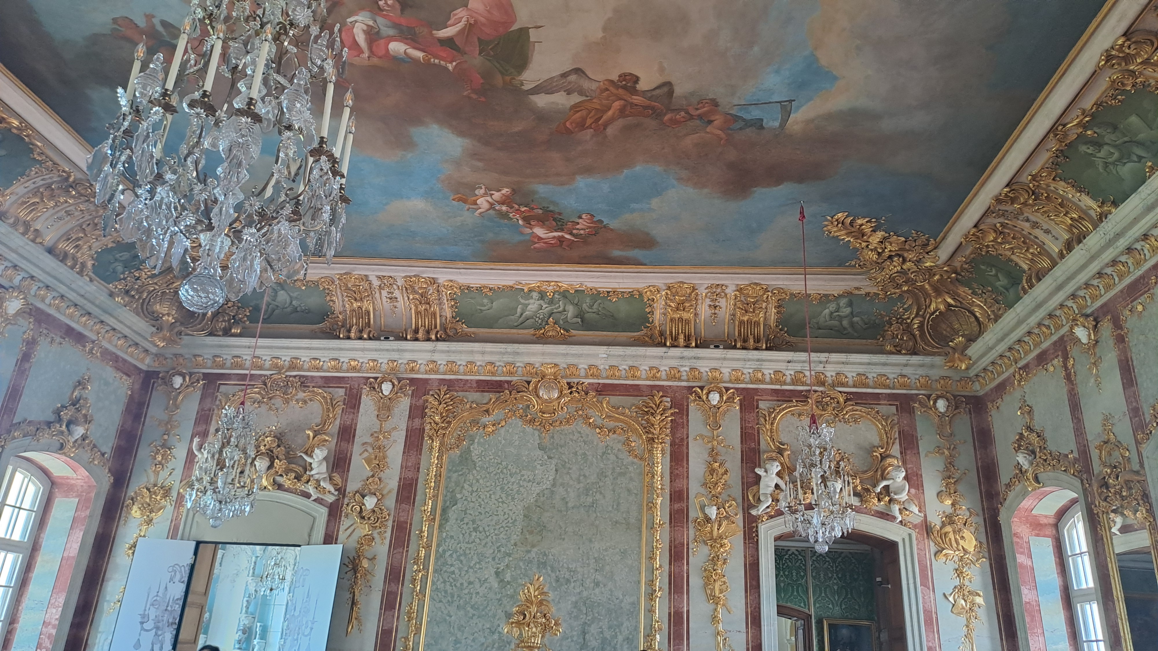 궁전 내부는 다양한 홀과 방으로 구성되어 있으며, 각 방마다 고유의 이름과 시대를 반영하는 독특한 장식이 있습니다. 유명한 홀로는 화려한 샹들리에와 벽화로 장식된 대리석홀, 황금홀 등이 있으며, 이 내부에서 다양한 유럽 예술과 가구를 감상할 수 있습니다