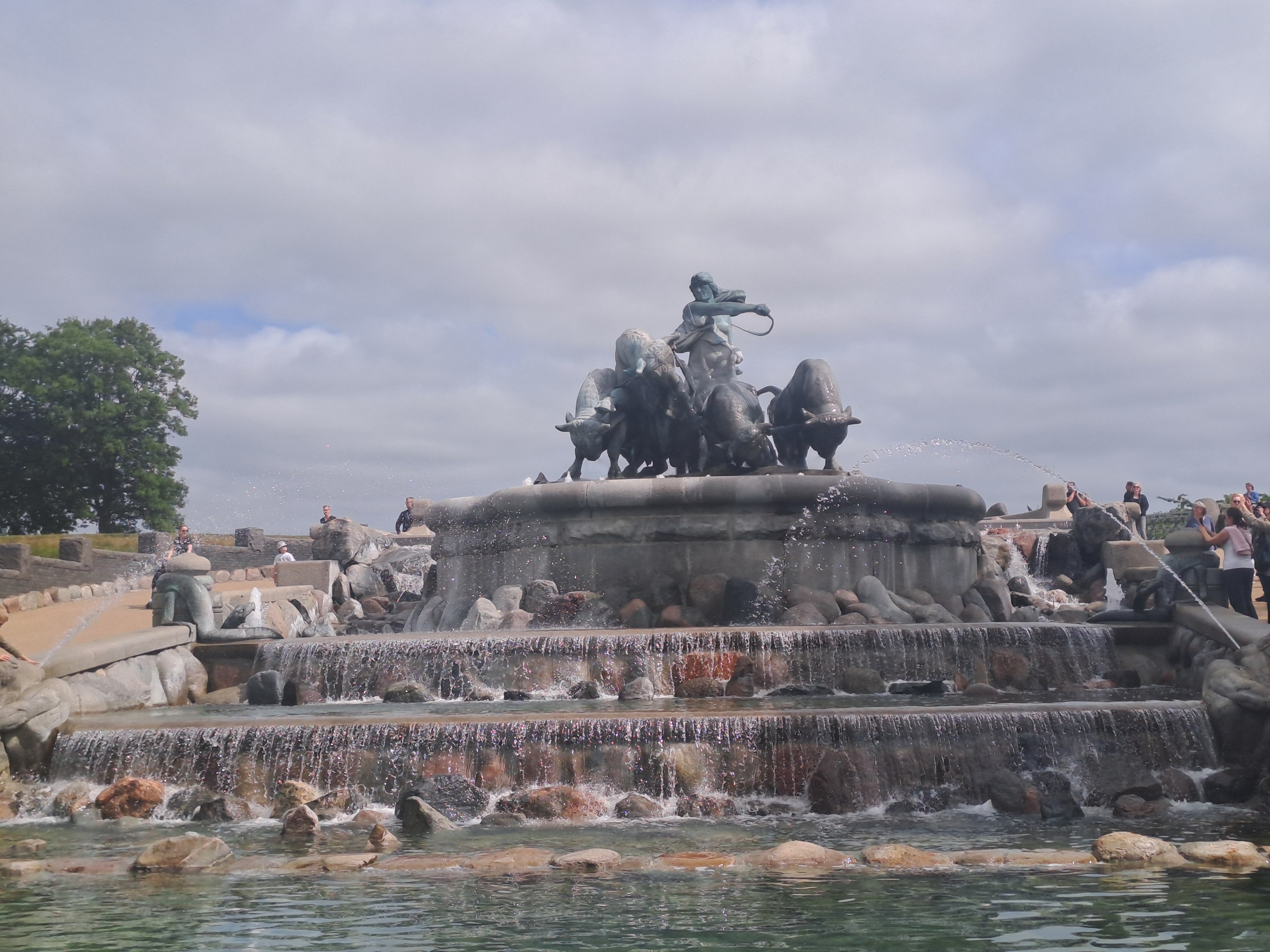 계피온 분수대는 노르웨이 신화에서 영감을 받아 만들어졌습니다. 계피온은 노르웨이 신화에 나오는 여신으로, 자신의 아들들을 네 마리 황소로 변해 땅을 갈아 새로운 섬인 셸란드(Sjælland)를 만들었다는 이야기를 담고 있습니다. 이 이야기에서 코펜하겐이 위치한 셸란드 섬의 탄생 배경을 알 수 있어요.