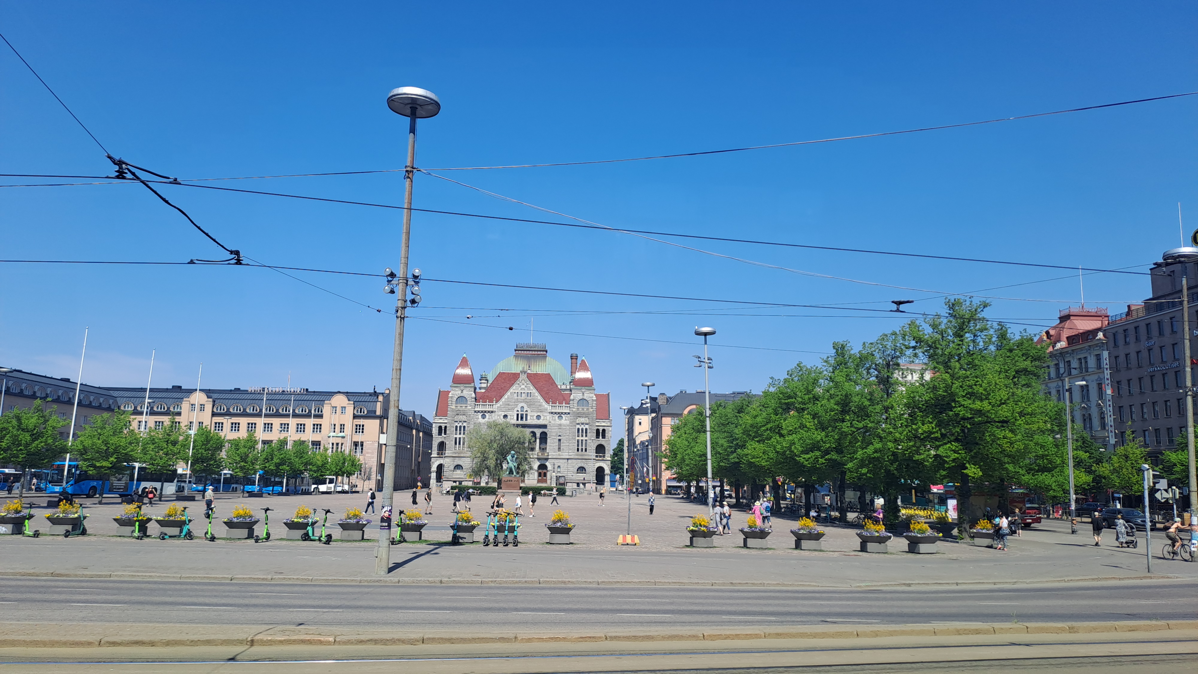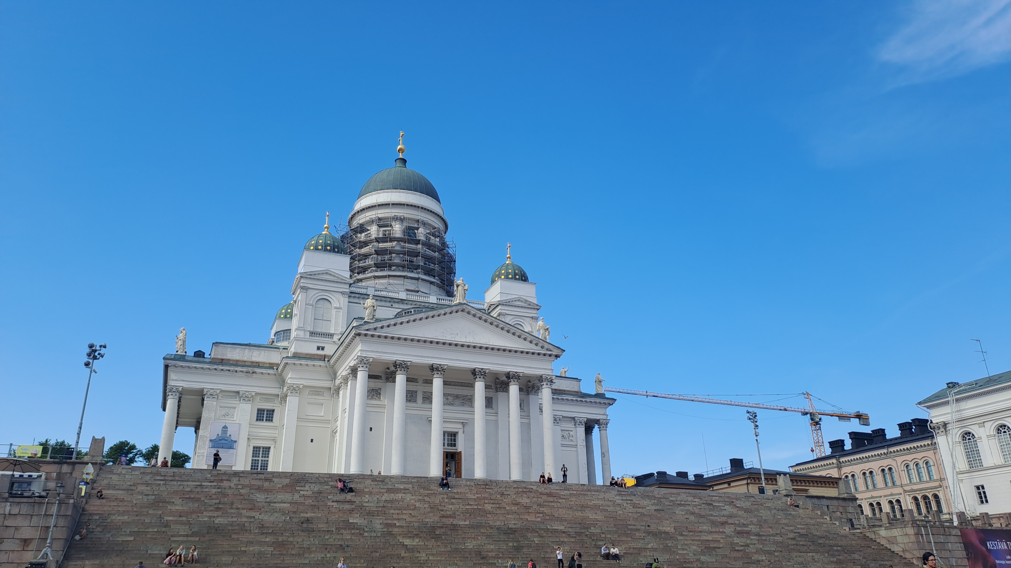 광장의 주요 건물로는 화려한 헬싱키 대성당(Helsinki Cathedral), 원로원 건물, 대학교 본관, 그리고 국립 도서관이 있습니다. 헬싱키 대성당은 특히 원로원 광장의 상징적인 명물로, 백색의 외관과 큰 녹색 돔이 돋보이는 이 건물은 방문객들의 사진 촬영 장소로도 인기가 많습니다.