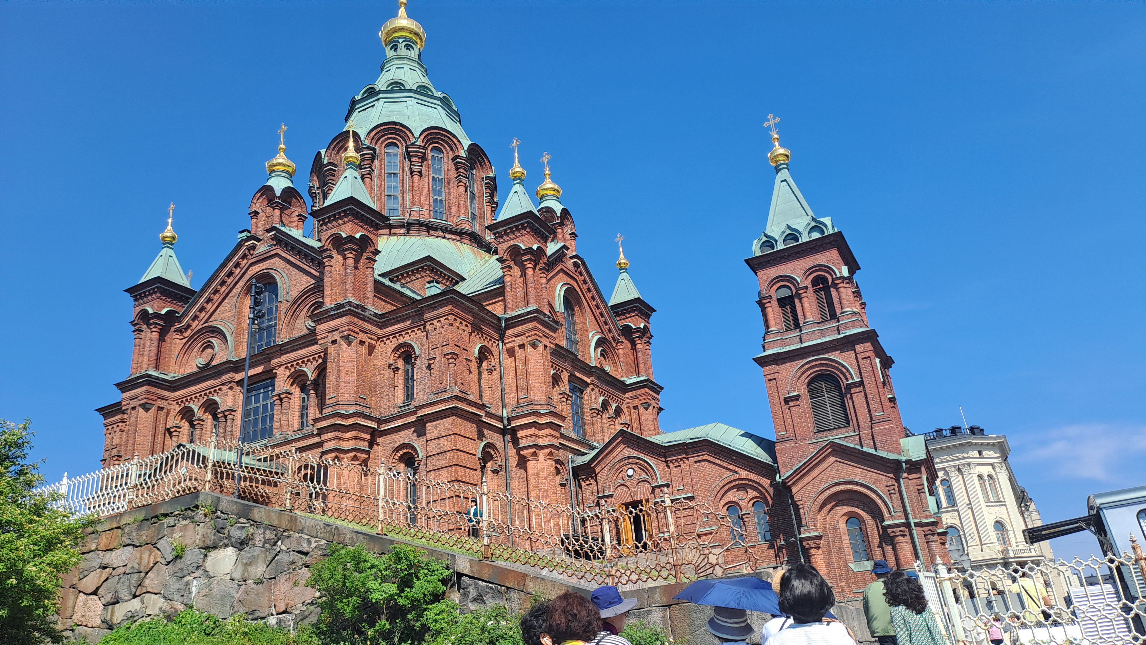 헬싱키의 우즈펜스키 사원(Uspenski Cathedral)은 핀란드의 수도 헬싱키에 위치한 동방 정교회의 대성당으로, 북유럽에서 가장 큰 동방 정교회의 성당 중 하나입니다. 절벽 위에 위치한 이 성당은 눈에 띄는 붉은 벽돌과 금빛 양파 모양의 돔들로 유명합니다.