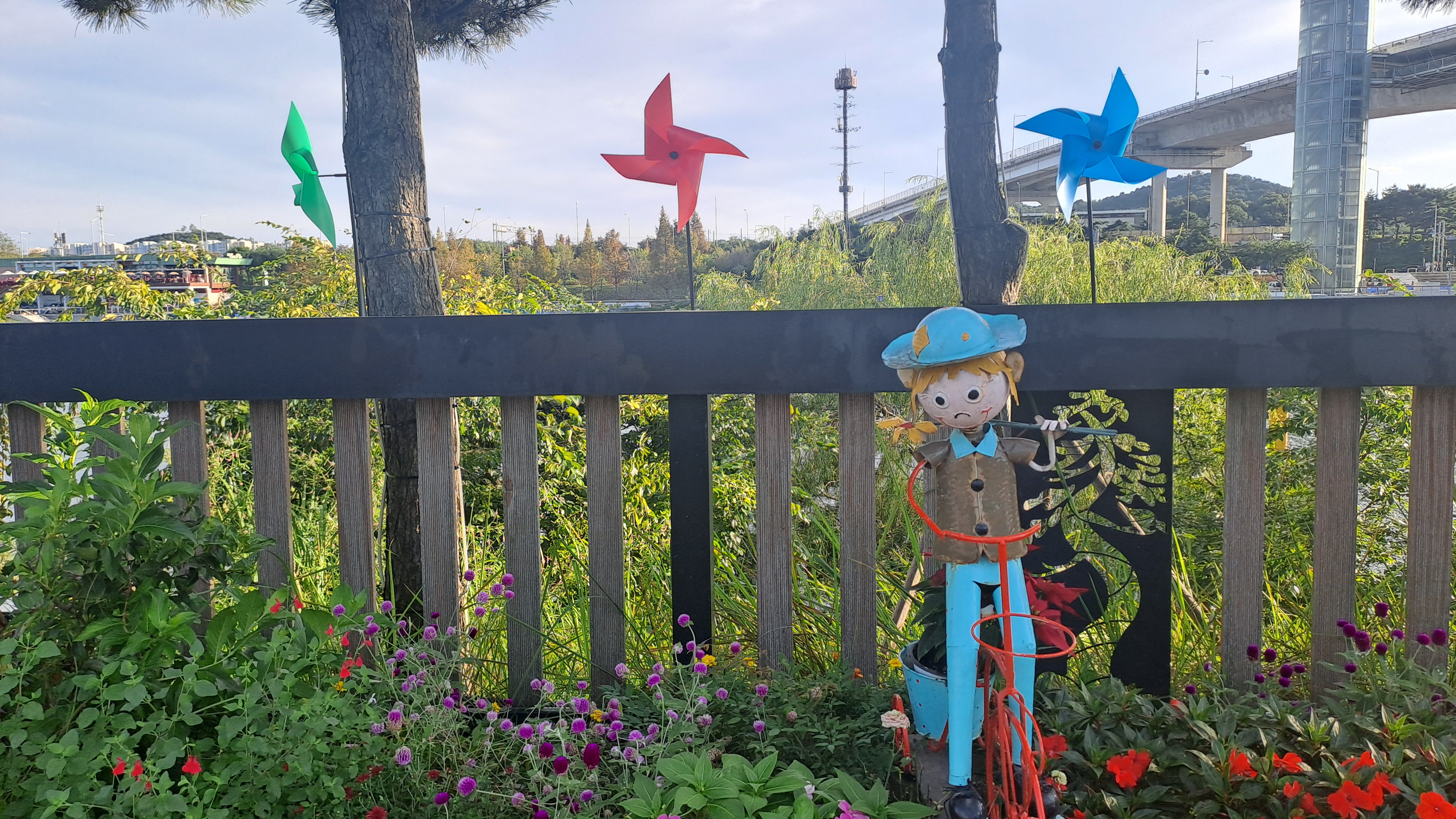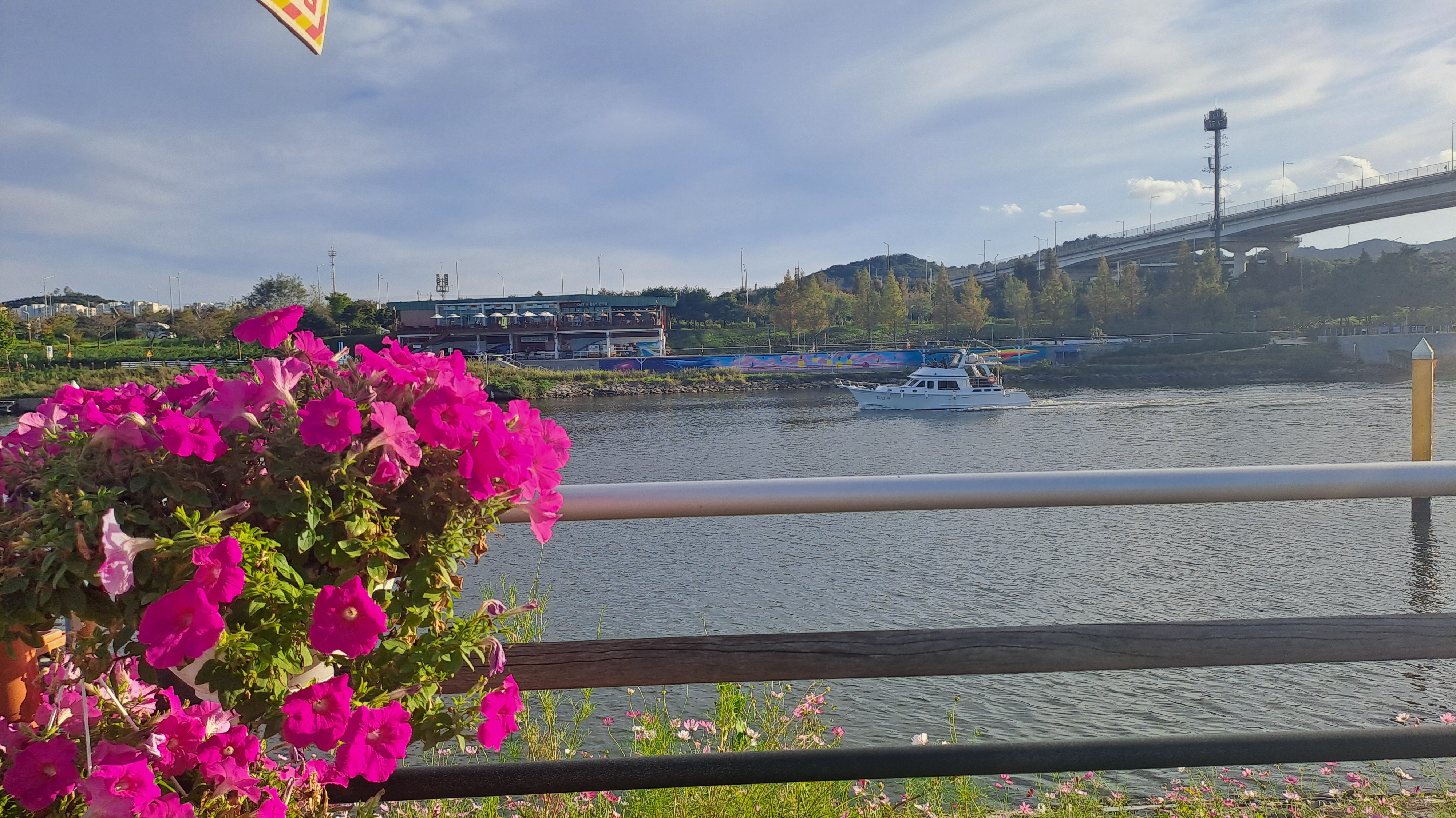 둑씩 셋씩 짝지어 시원한 아라뱃길 바람을 맞으며 가을꽃에 취해본다