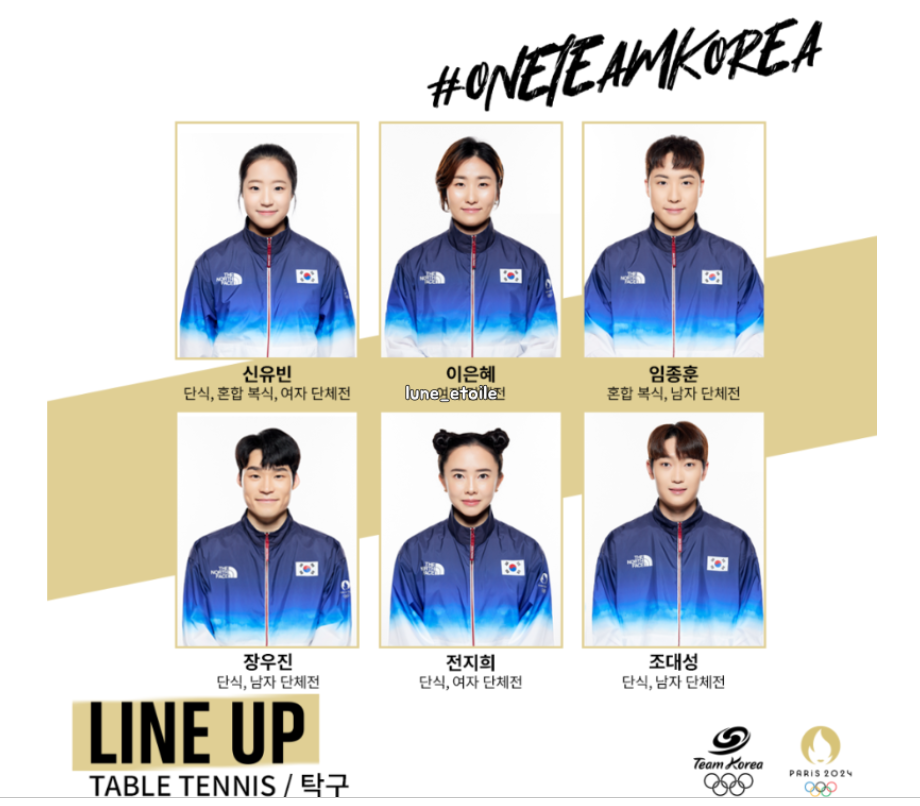 남자선수로는 임종훈(혼합복식, 남자단체전), 정우진(단식, 남자단체전,) 조대성(딘식, 남자단체전)