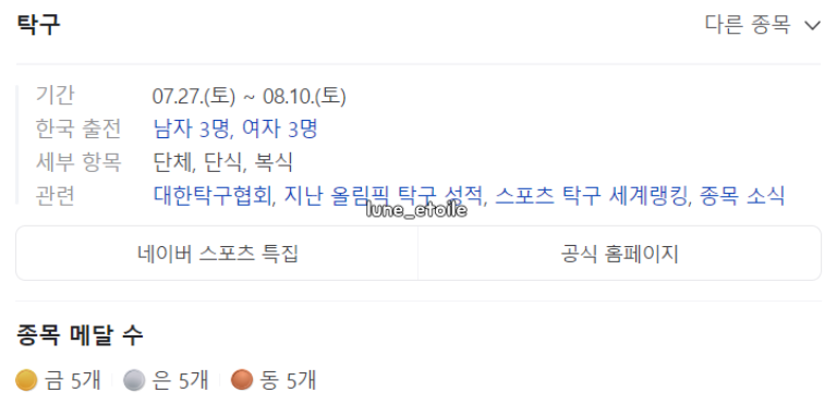 탁구에는 금5개 은5개 동5개의 매달이 걸려있습니다.